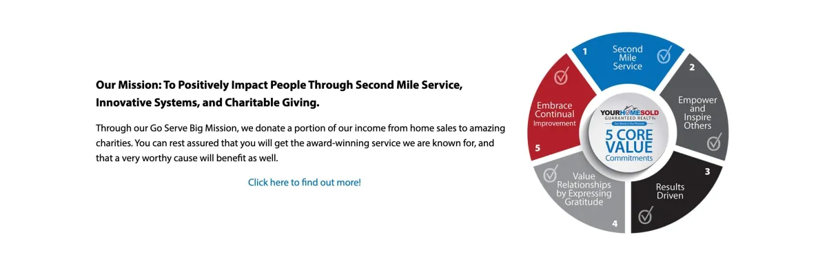 At Your Home Sold Guaranteed Realty, It Is Our Mission, To Positively Impact The Lives of People, Through Second Mile Service, Innovative Systems, and Charitable Giving.